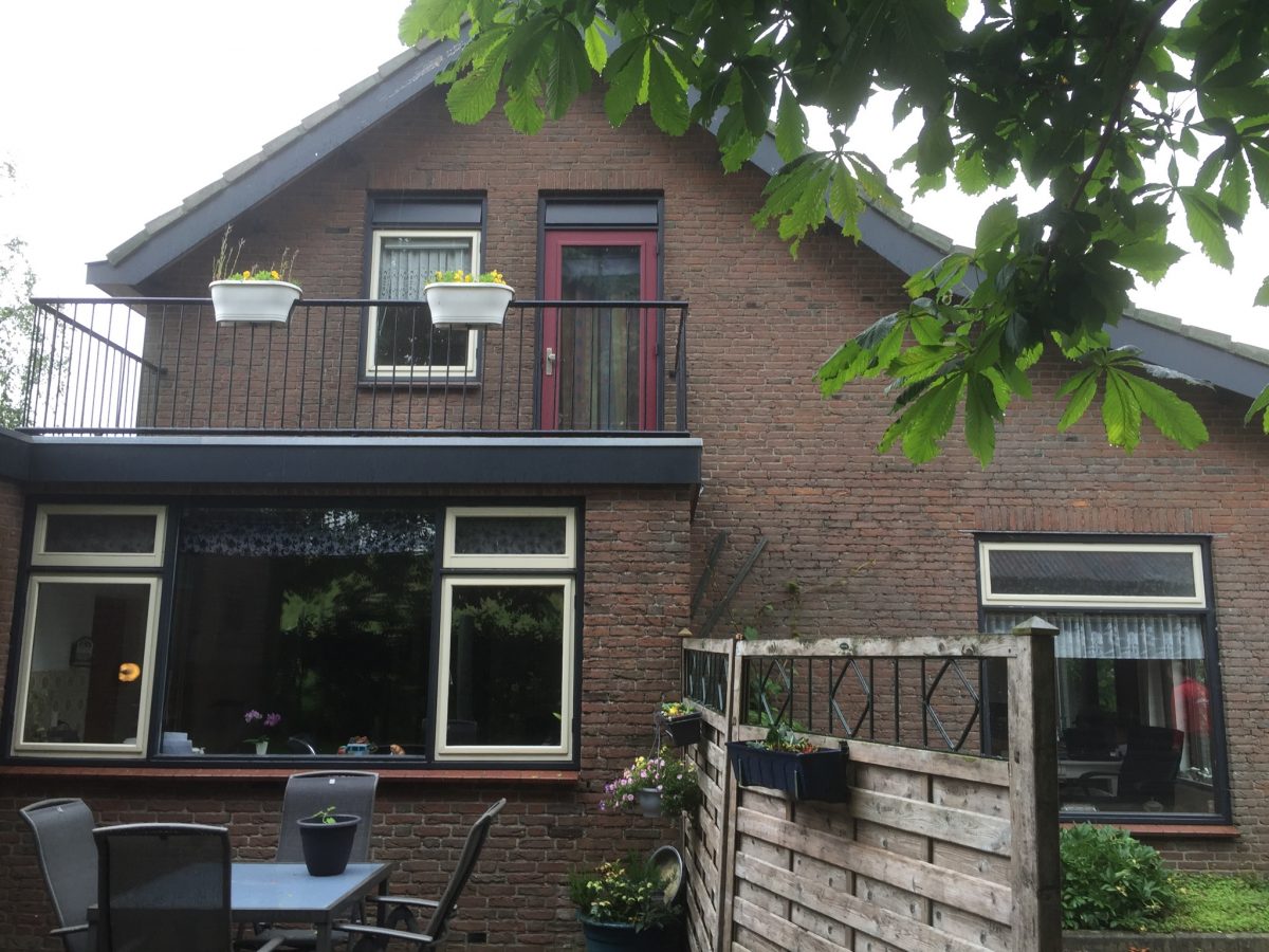 We gaan een vrijstaand huis bekijken in Wijk bij Duurstede. Het is dat mijn man er zo enthousiast over is, zelf vind ik het niks. Op de foto’s van de makelaar: een donkereiken keuken uit 1975 met lichtbeige tegeltjes in bloempatroon, een woonkamer met donkerbruine sierbalken aan het plafond en donkerbruine raamkozijnen. “Vreemd, de badkamer zit op de begane grond”, meld ik. “Hmm…” antwoordt mijn man. We rijden kilometers over de dijk. “Wat ligt het afgelegen.” “Lekker vrij”, antwoordt hij. Ik schrik. Hij moet wel weten dat ik mee ga kijken om hem een plezier te doen, gewoon als uitje, niet omdat ik serieus geïnteresseerd ben in deze plek. “Het zal wel niks zijn”, probeer ik. Hij zucht. “We gaan gewoon even kijken.” Goed, we gaan gewoon even kijken. Het is een grijze dag. Daar staat het: een huisje met een puntdak. Erachter een hoge dijk. De kozijnen, deuren en boeiborden: saai grijs. “Zie je, dit is niks voor ons. Stijlloos”, mopper ik. “Klein ook.” “Wacht nou maar af.” We parkeren de auto en stappen uit.